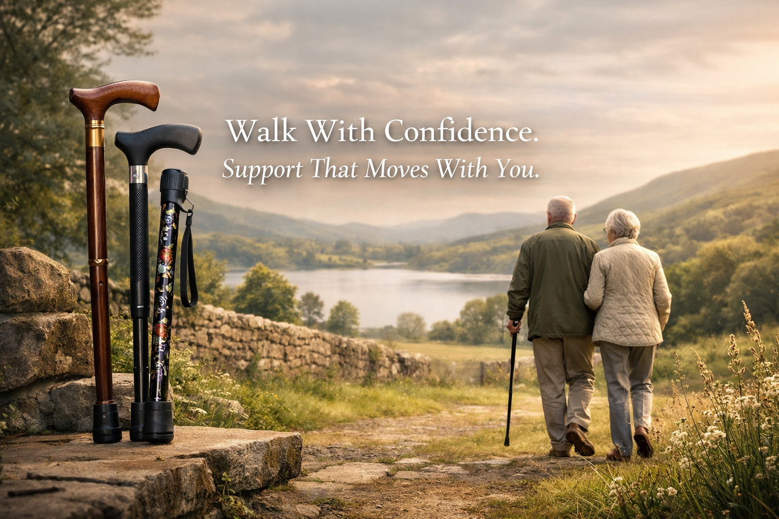 Elegant, lightweight and foldable walking sticks designed for everyday comfort, balance and independence for men and women across the UK.
